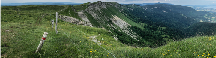 Sur cette dernière journée, nous cheminons dans un territoire marqué par l’Histoire qui fut la frontière entre les royaumes de France, d’Espagne et d’Italie puis un lieu de maquis pour les résistants de la 2nde Guerre Mondiale. Du sommet du Crêt de Chalam, nous aurons un point de vue idéal sur la Haute-Chaîne du Jura au premier plan et les Alpes au second plan.